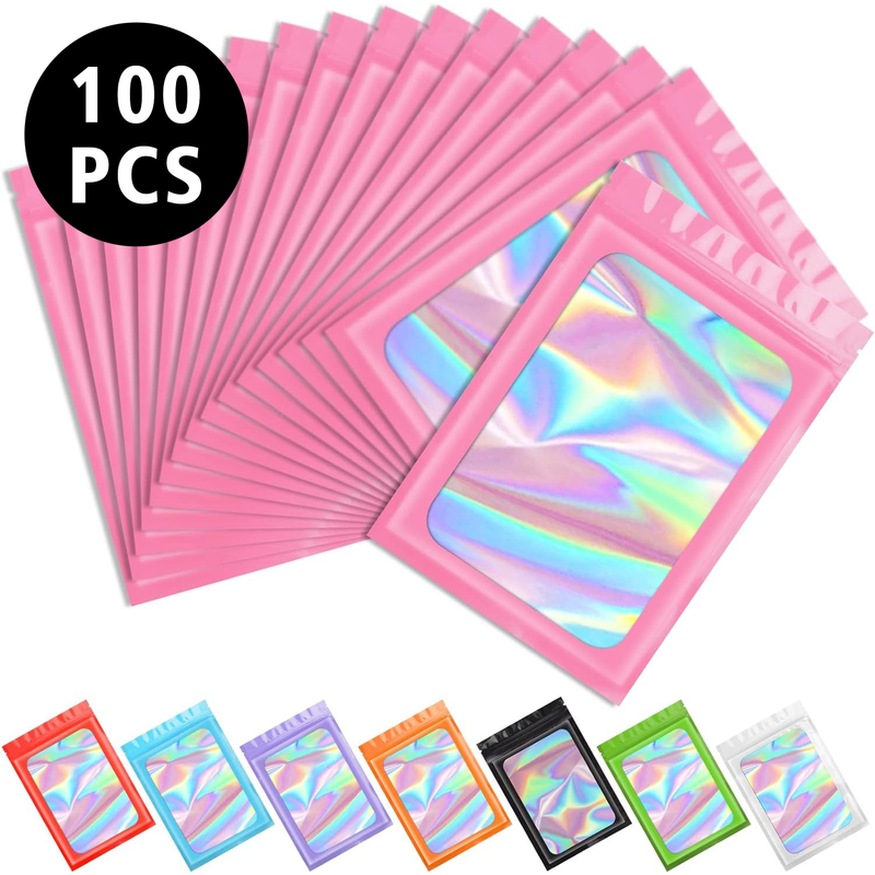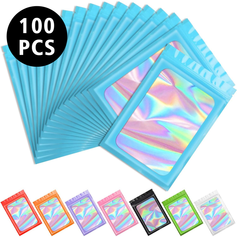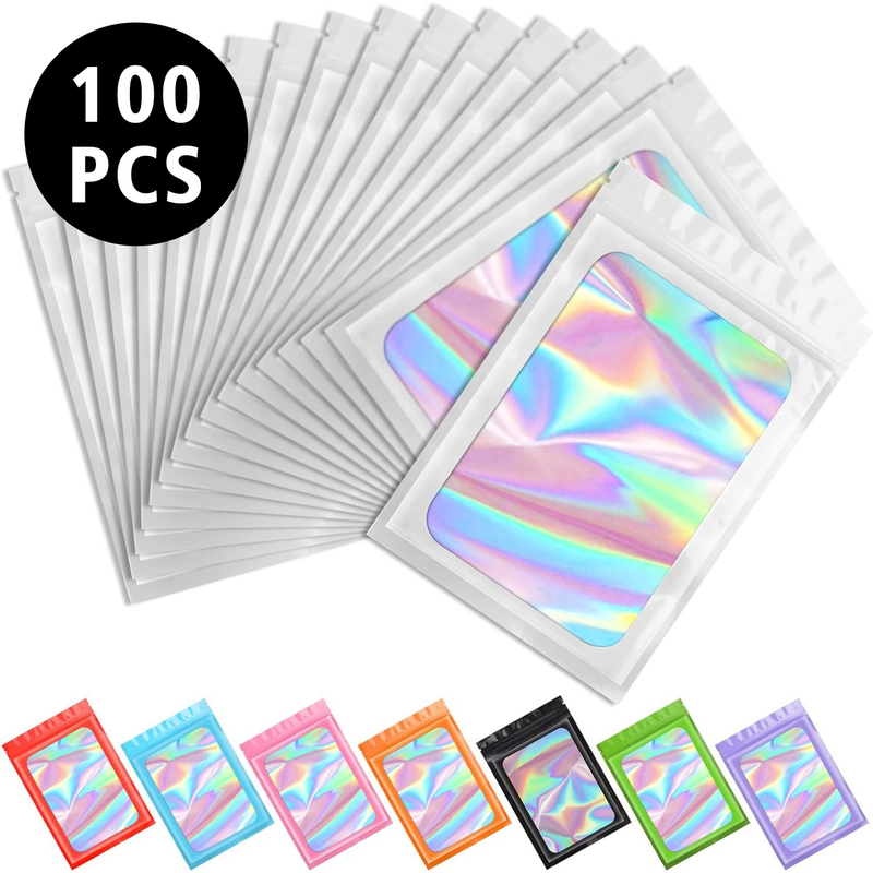 100ps Mylar Bags Custom Logo Printed Resealable Earrings Ring Jewelry Storage Holographic Aluminum Foil Hermetic Packaging