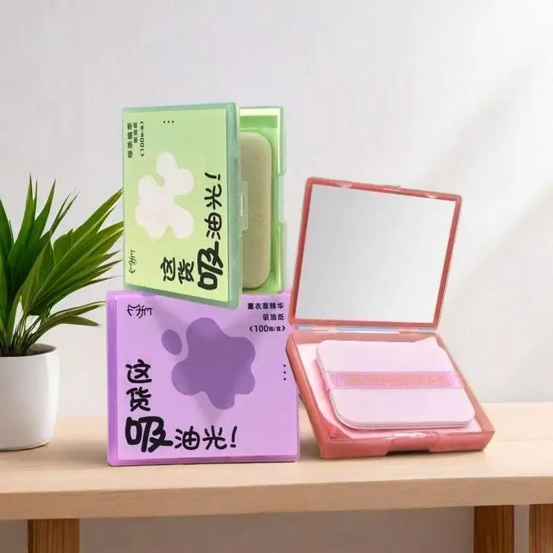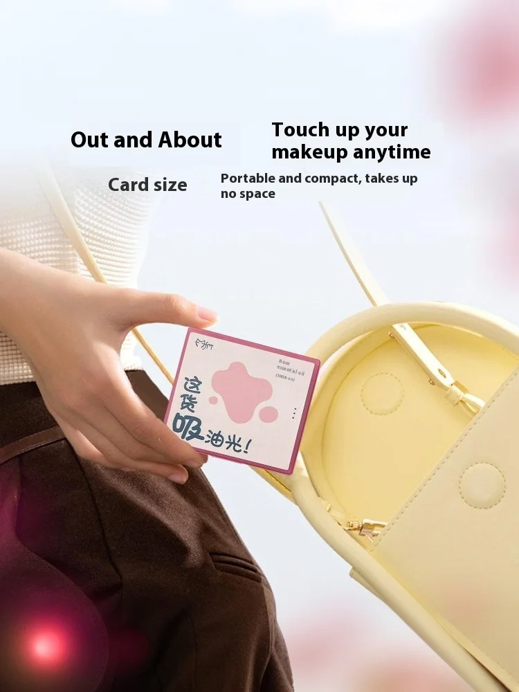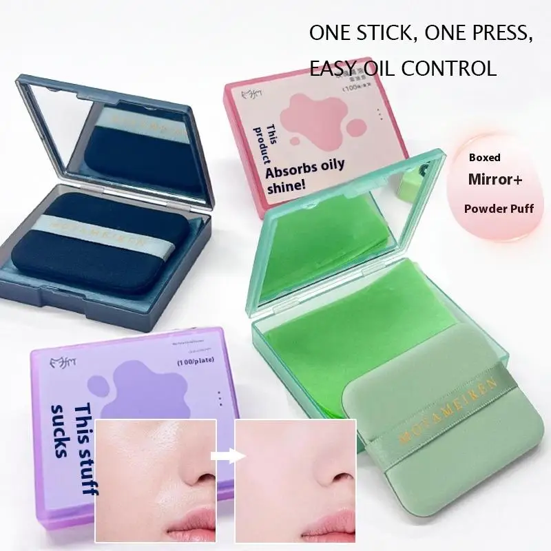 100Sheets Oil-absorbing Paper With Mirror Case &Puff Portable Oil-holding Bamboo Charcoal Tea Paper For Oily Skin Makeup