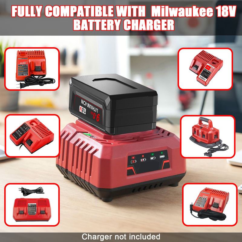 100V-240V Battery Charger For Milwaukee M18 Battery EU AU UK US Plug Charger For Milwaukee 18V Cordless Power Tools