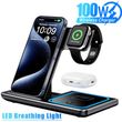 100W 3 in 1 Night Light Wireless Charger Stand For iPhone 17 16 15 14 13 12 Apple Watch Airpods Foldable Fast Charging Station