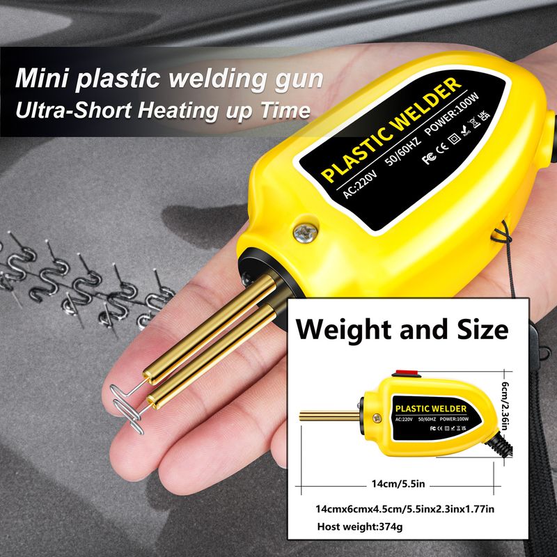 ● Repairs at least 98% of plastics on the market Great for repairs: bumpers, dashboards, lamp holders, plastic rings, radiators, spoilers, handlebars, headlights, plastic wings, car and motorcycle plastic fixtures, etc