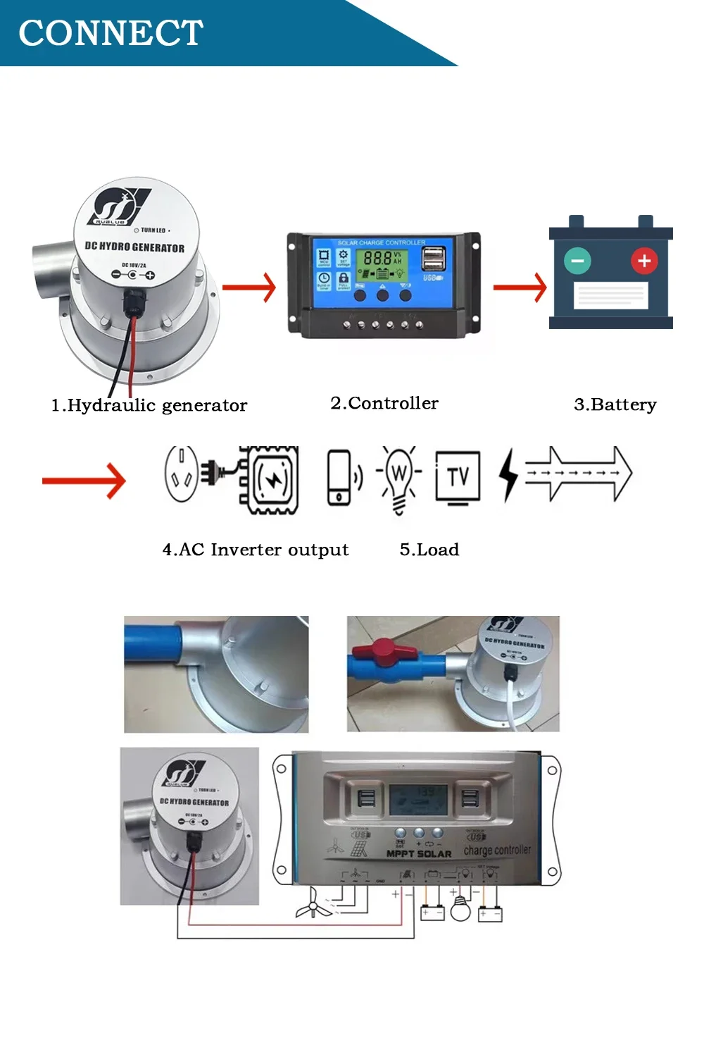 100W Water Turbine Generator DC Water Pump 12V24V With Voltage Regulator Charging Controller Free to Charge When There is Water