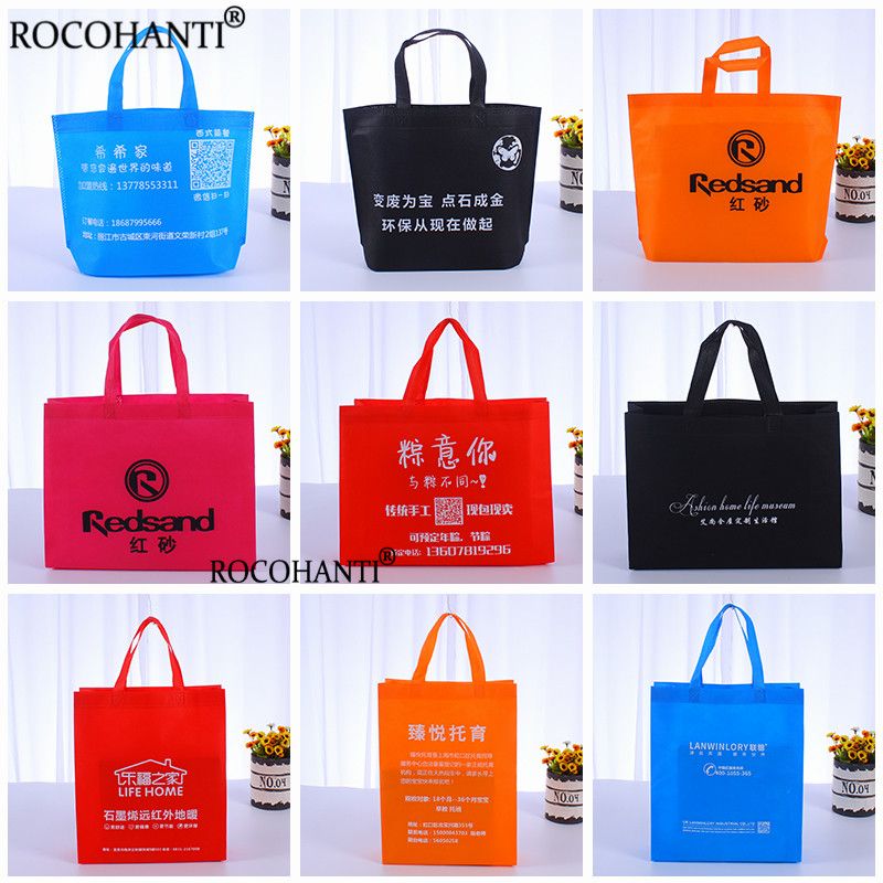 100x Custom LOGO Eco Reusable Foldable Non-woven Fabric Gift Bag Non Woven Shopping Tote Bag with Handle for Supermarket Grocery