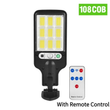 108 COB Sensor Street Lamp 3 Light Modes Outdoor Waterproof Security Solar Lamps for Garden Patio Path Remote Control Light