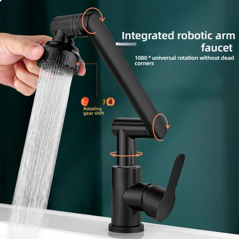 1080° Swivel Bathroom Sink Faucet Basin Faucet Mixer Deck Mounted Splash Proof Water Tap Shower Head Aerators TapwareRobotic-Arm