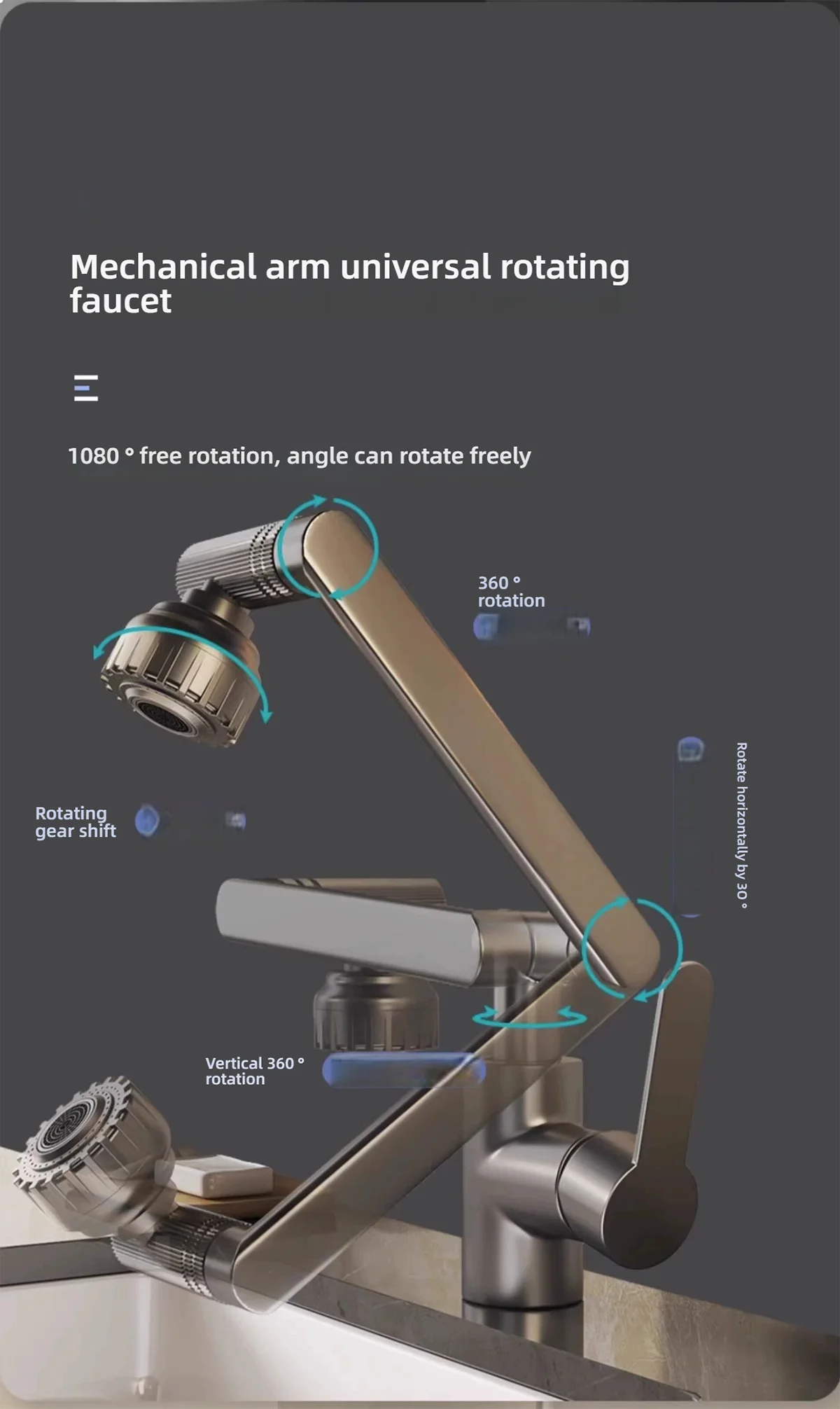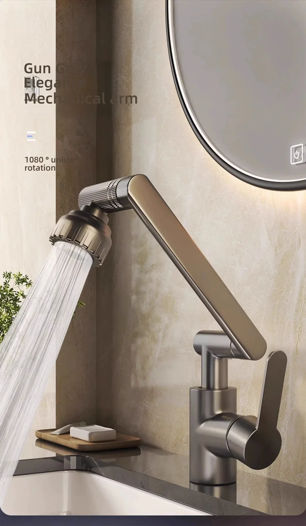 1080° Swivel Bathroom Sink Faucet Basin Faucet Mixer Deck Mounted Splash Proof Water Tap Shower Head Aerators TapwareRobotic-Arm