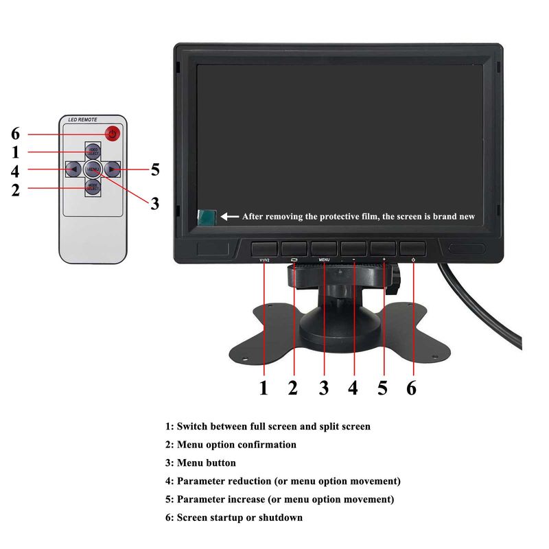 LCD: 7 inch LCD IPS 2-Split Screen Monitor