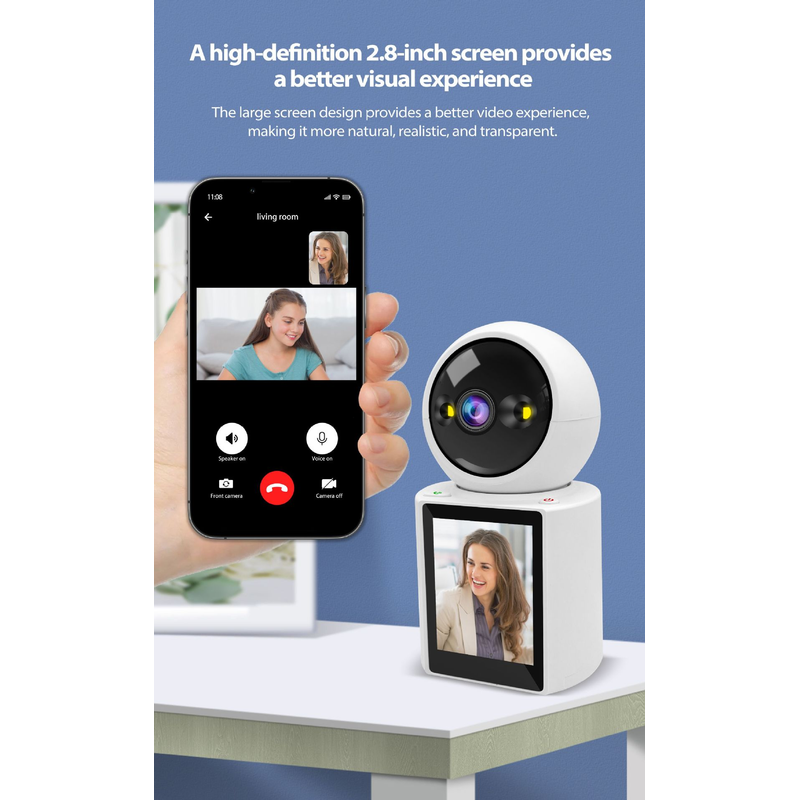 There are Answer buttons and Hang Up buttons at the bottom of the camera. It is easy for the elderly and children at home to communicate with their children or parents who are out.