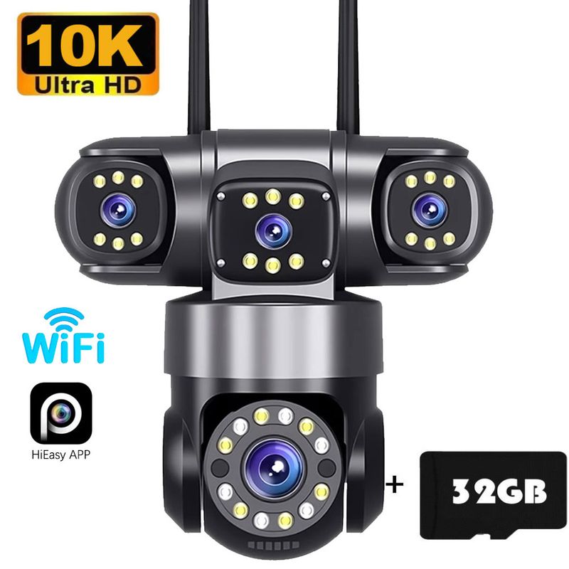 10K 20MP Home Security Outdoor WiFi Camera 4 Lens 4 Screen 360° 16X Zoom CCTV Wireless Surveillance PTZ Cam Security Protection HiEasy APP