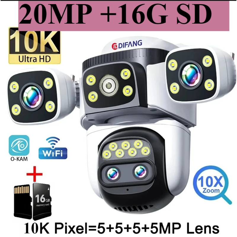 10K WiFi Camera 20MP Wireless Outdoor 10X Zoom 3 Screen Four Lens 720° PTZ Automatic Tracking Waterproof Security Camera CCTV