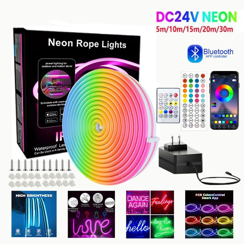 10M 20M 30M DC24V LED RGB Neon Strip Music Sync Flexible Light Smart Bluetooth APP Waterproof LED Light Strip For Swimming pool