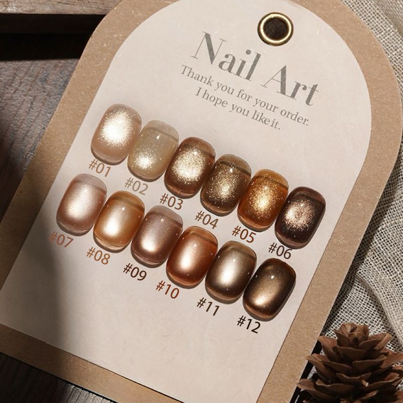 10ML 1-12PCS 2025 Mew Autumn Black Nails Luxury Coffee Amber Whitening Glass Bead Cat Eye Magnet Gel Nail Polish Brown Red Nails