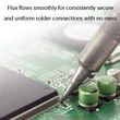 • Flux flows smoothly for consistently secure and uniform solder connections with no mess.