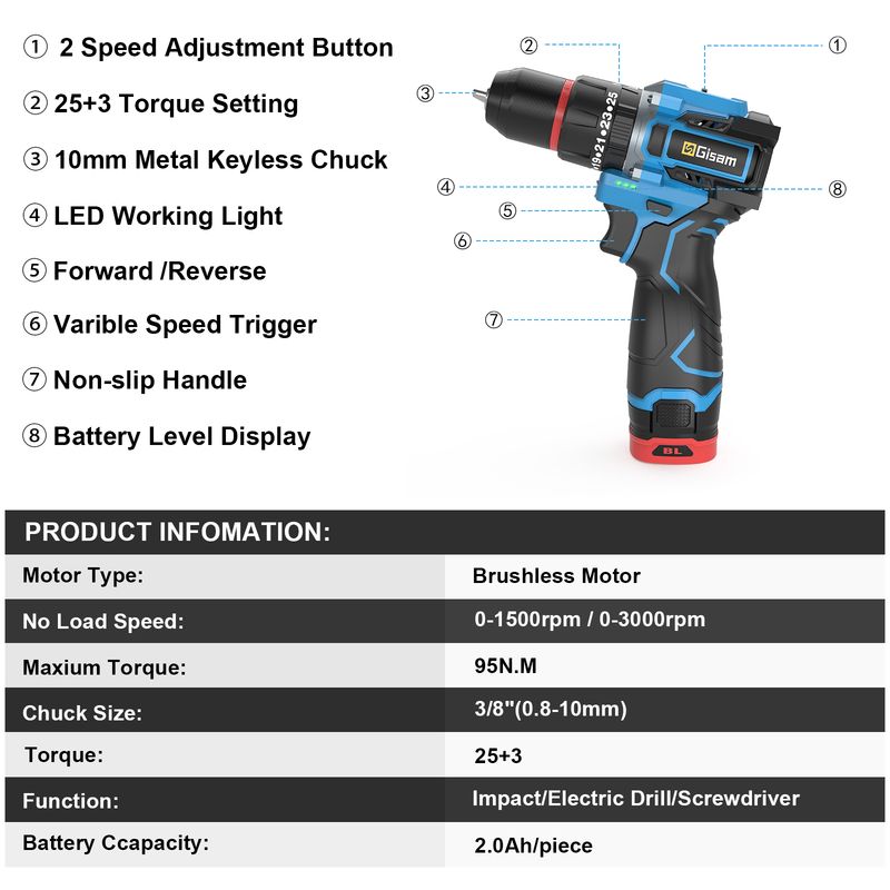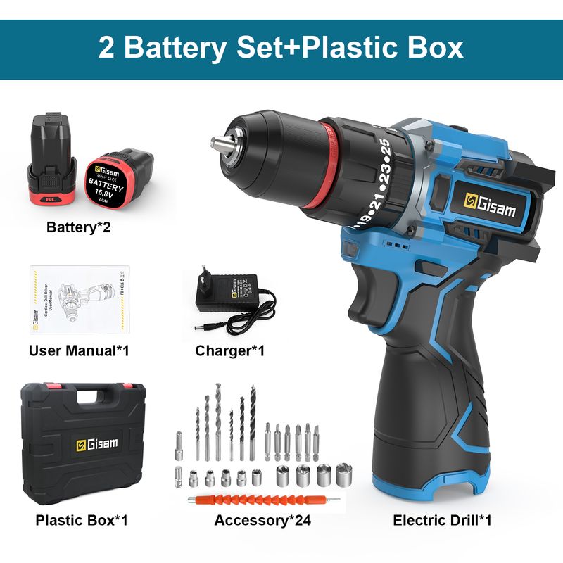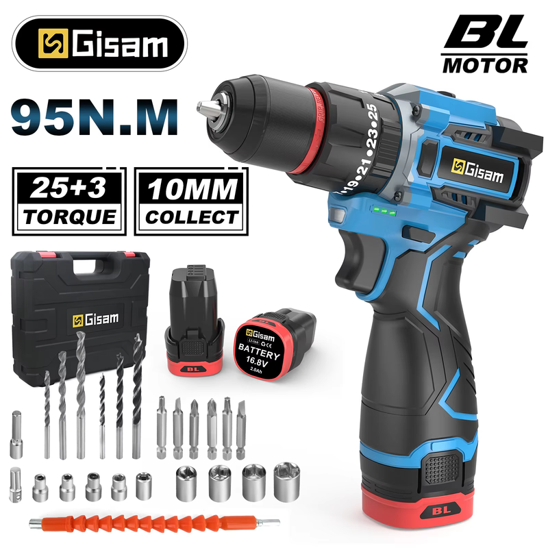 10MM 25+3 Torque Brushless Electric Drill Cordless Impact Drill Metal Ratchet Chuck Electric Hand Drill Electric Screwdriver