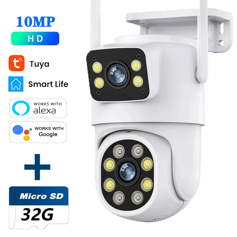 10MP Dual Lens Tuya Wifi Camera PTZ Outdoor 4K Wireless Dual Screen Security Camera Auto