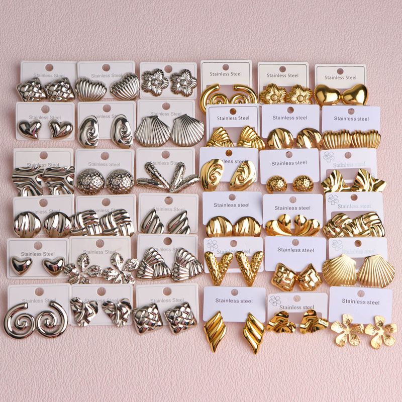10Pairs/Lot Elegant Simple Stainless Steel Women Earrings Geometric Heart Mixed Style Jewelry Gift Giving Wedding Travel