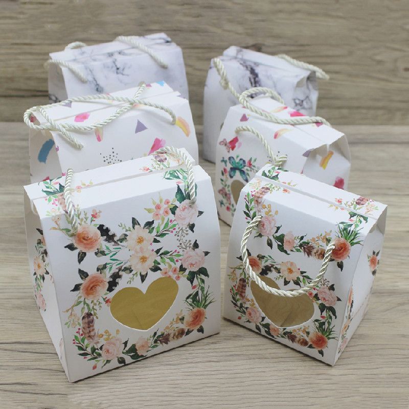 10pc 2sizes paper gifts package box with hanger DIY handmade marble flower style paper window box paryt suppiles wrapping