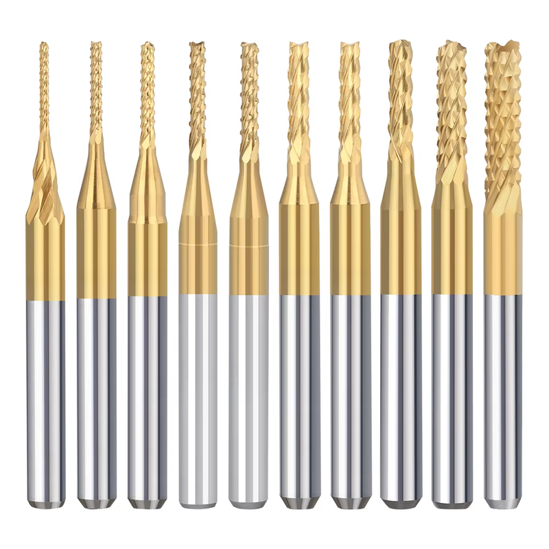 10pcs 0.8-3.175mm Titanium Coated Carbide PCB Milling Cutter CNC Router Bits Corn End Mill for PCB Machine Milling Tool