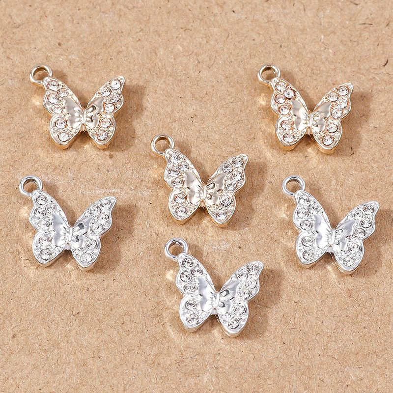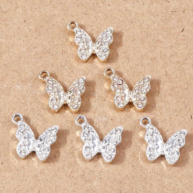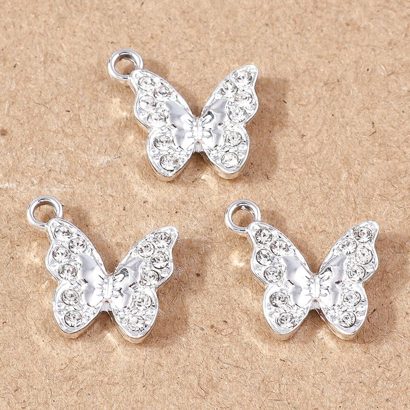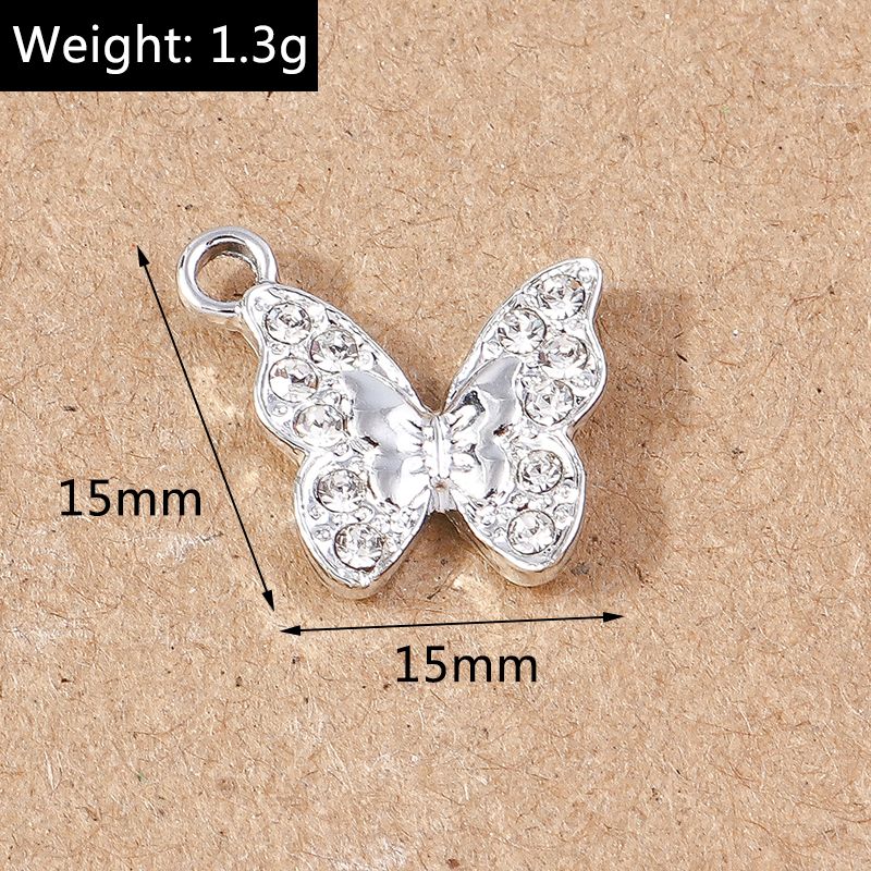 10pcs 15x15mm Cute Crystal Butterfly Charms for Jewelry Making Alloy Animal Charms Pendants for DIY Necklaces Earrings Gifts