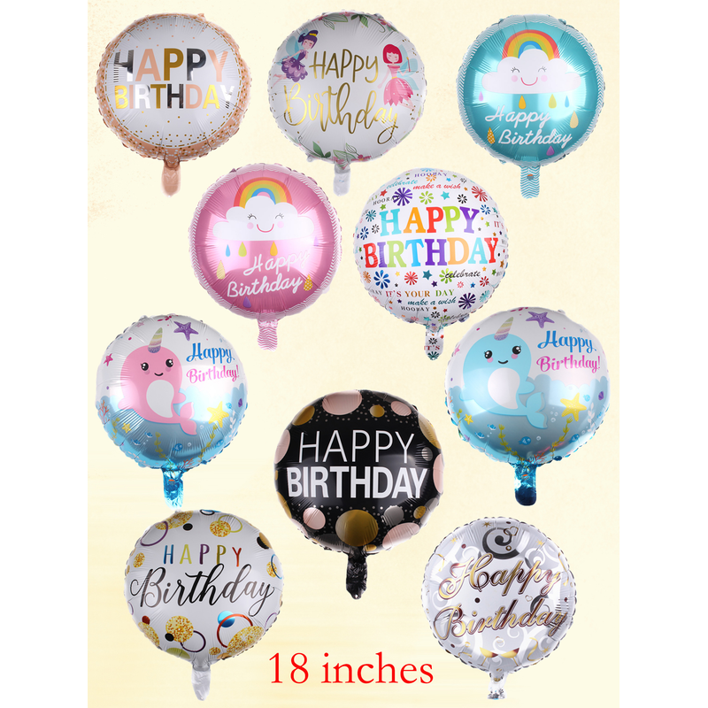 10pcs 18 Inch Round Happy Birthday Balloons Set Birthday Party Decorations Birthday Theme Helium Balloon Random style