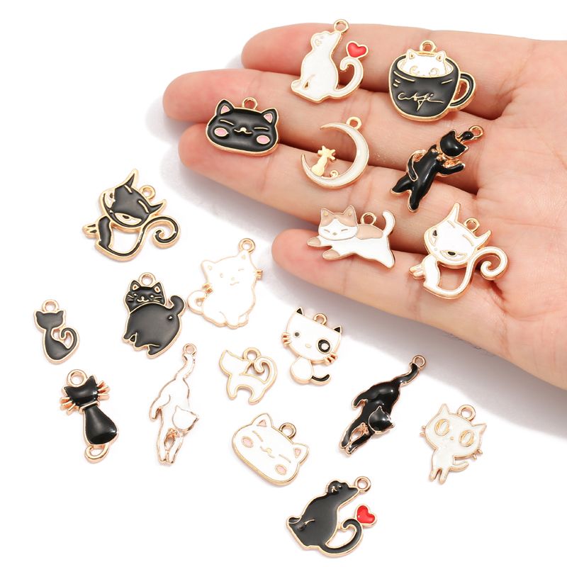 10pcs 2 Colors 17 styles Alloy Enamel cat Charms Pendant For DIY Earrings Bracelet necklace Jewelry Accessories W478
