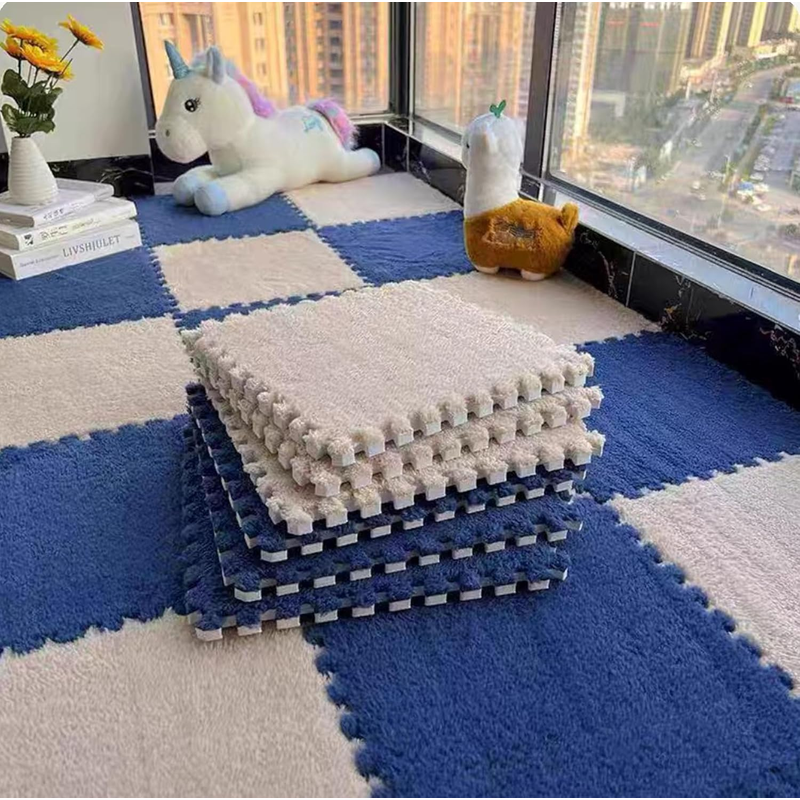 10Pcs Soft Plush Carpet Children Kids Rug Baby Game Play Mat Puzzle Carpet EVA Foam Interlocking Exercise Tiles Mat 30*30*1CM