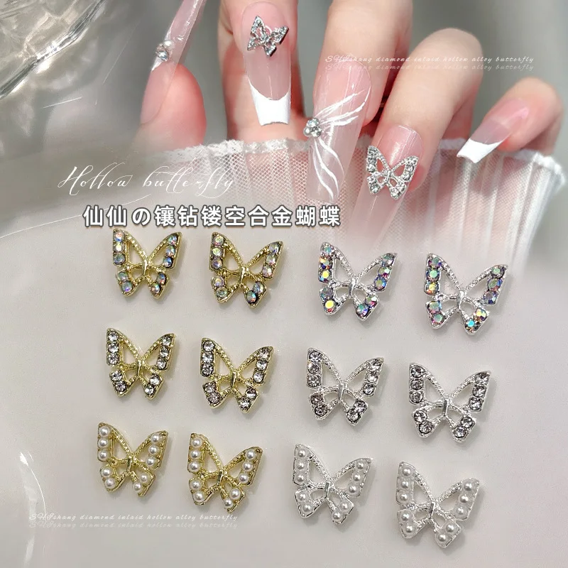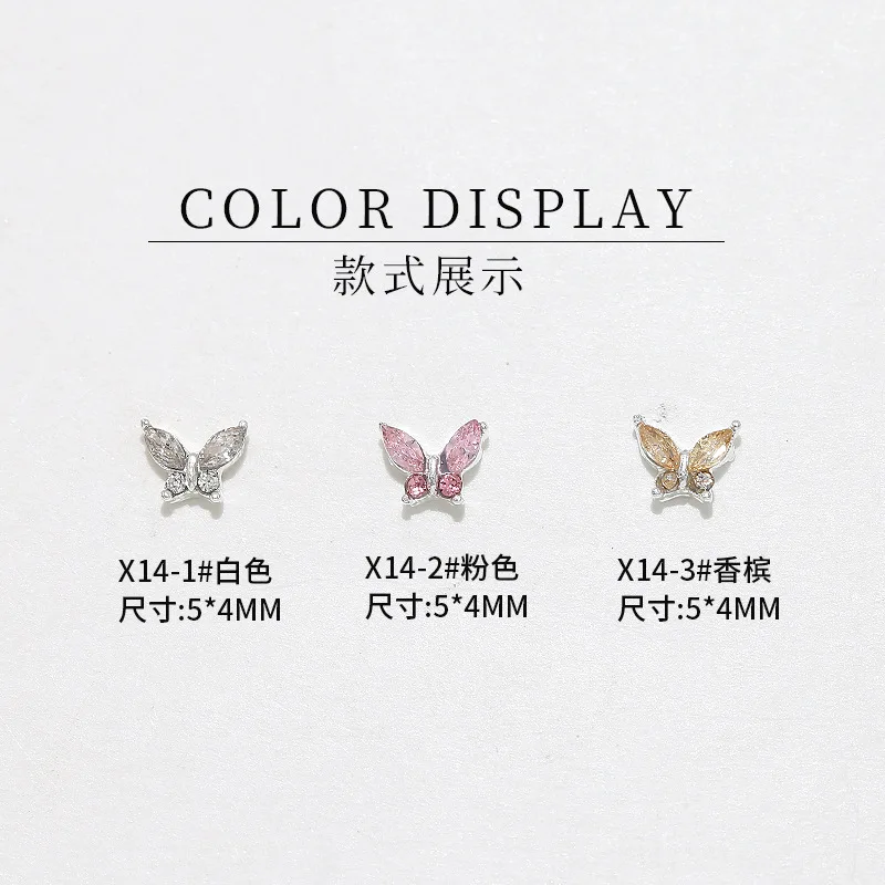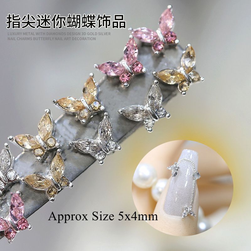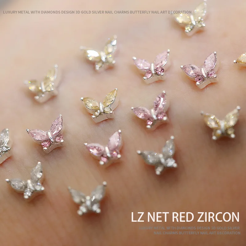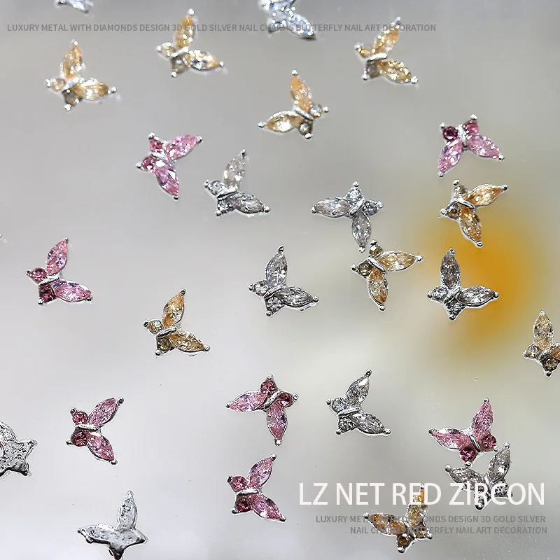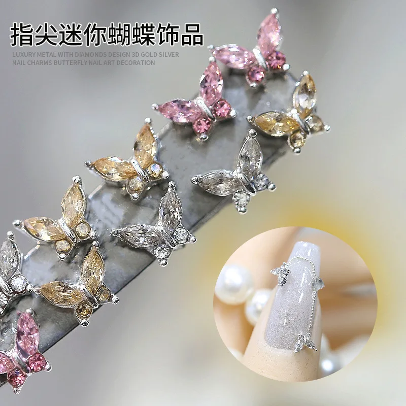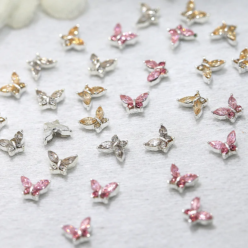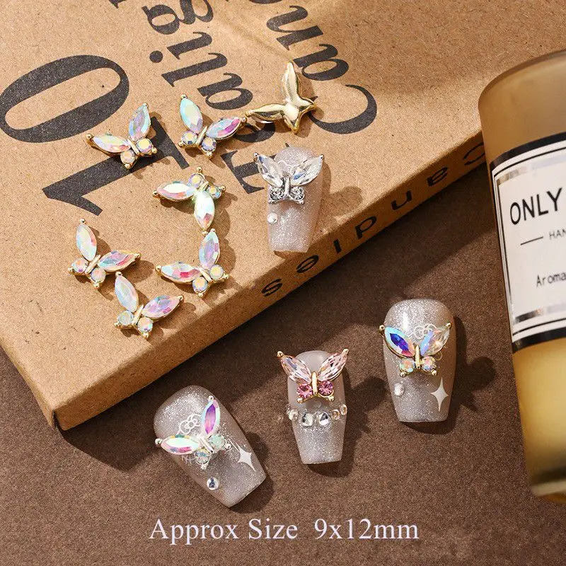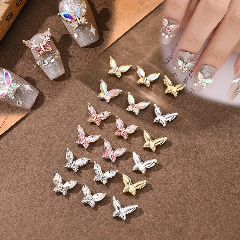 10PCS 3D Mini Crystal Butterfly Nail Art Charms Jewelry Parts Accessories Luxury Alloy Nails Decoration Rhinestones Supplies