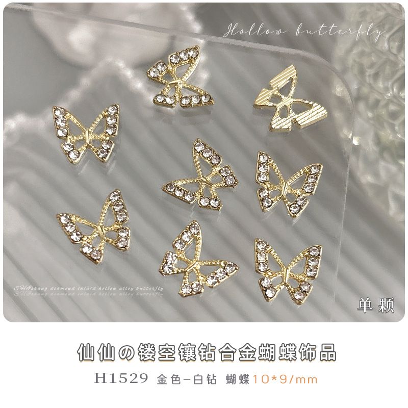 10PCS 3D Mini Crystal Butterfly Nail Art Charms Jewelry Parts Accessories Luxury Alloy Nails Decoration Rhinestones Supplies