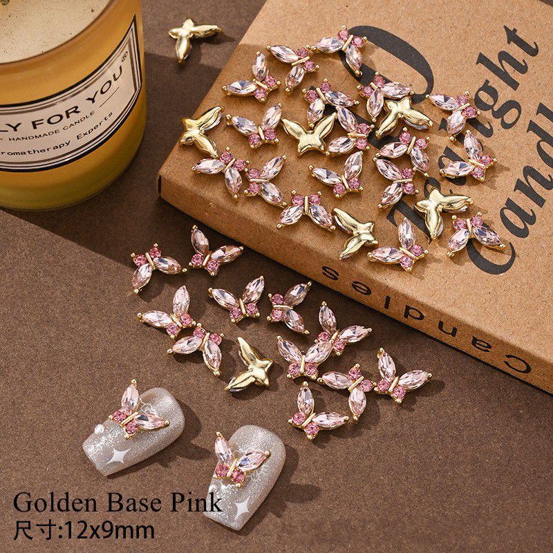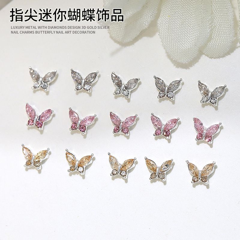 10PCS 3D Mini Crystal Butterfly Nail Art Charms Jewelry Parts Accessories Luxury Alloy Nails Decoration Rhinestones Supplies