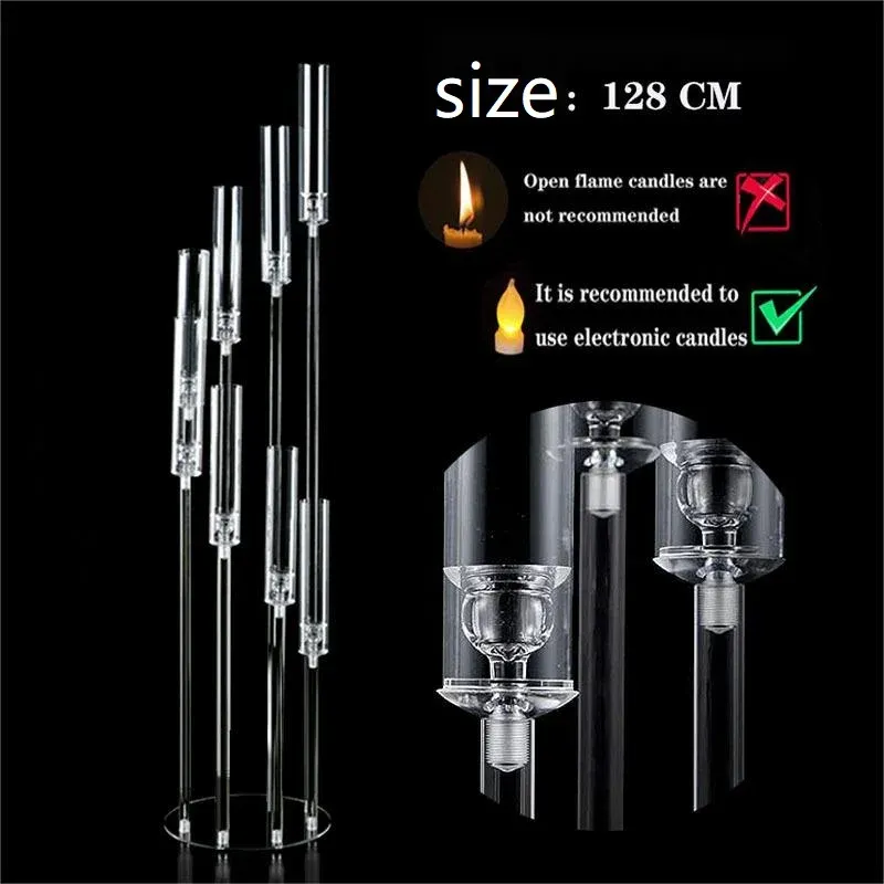 10Pcs 8 Arms Clear Candlesticks Holder 38.5 inches Tall Arcylic Candelabra Candle Holder Events Party Wedding Table Centerpiece