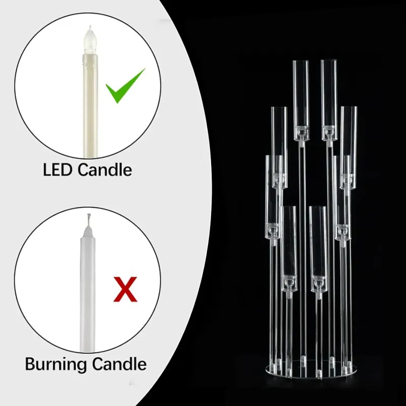 • 【Product Size】: This acrylic candle holder for fireplace decoration features 8 arms and measures 38 inches in height and has a bottom diameter of 10.9 inches. The large base provides stable support. It is suitable for candles with a diameter of 0.8 inches (candles not included). It can also be decorated with LED pillar candles to create a beautiful atmosphere for candlelight dinners and parties.