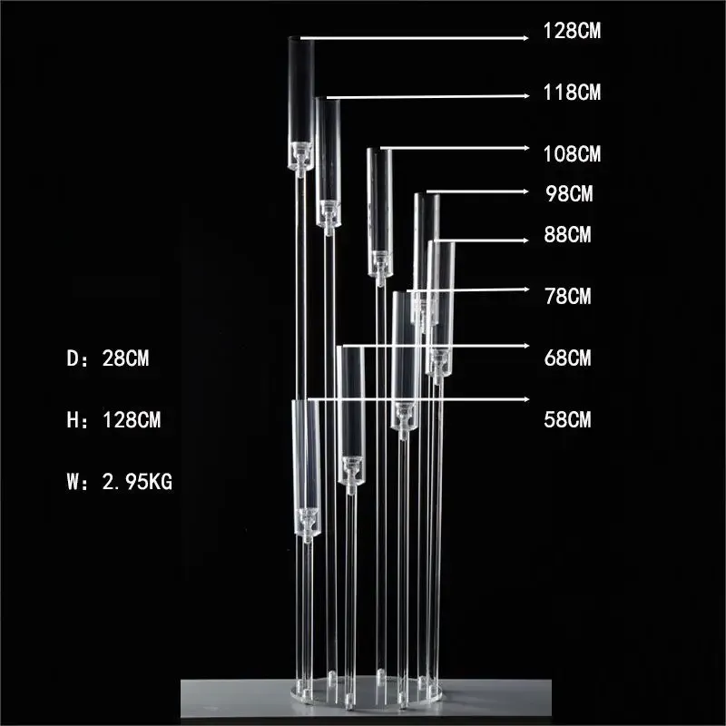 【Product Size】: This acrylic candle holder for fireplace decoration features 8 arms and measures 38 inches in height and has a bottom diameter of 10.9 inches. The large base provides stable support. It is suitable for candles with a diameter of 0.8 inches (candles not included). It can also be decorated with LED pillar candles to create a beautiful atmosphere for candlelight dinners and parties.