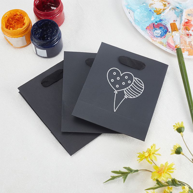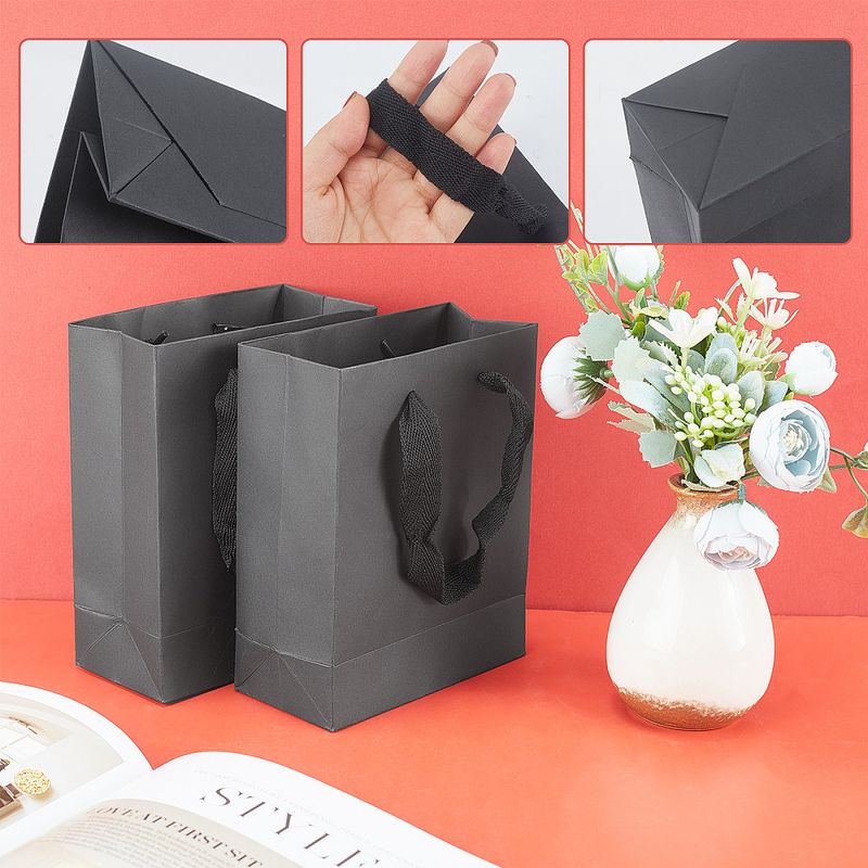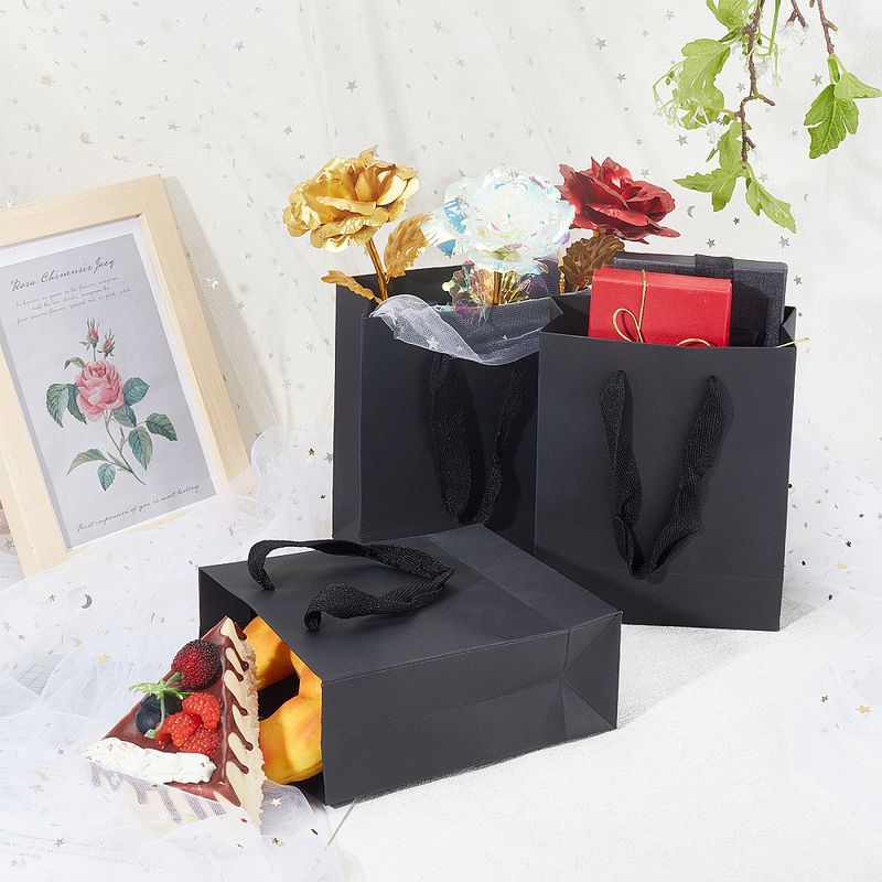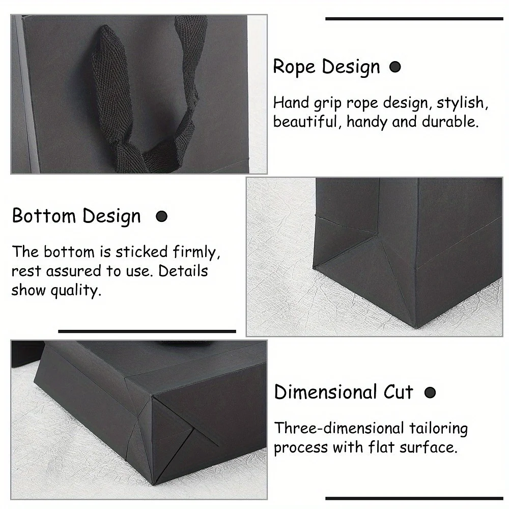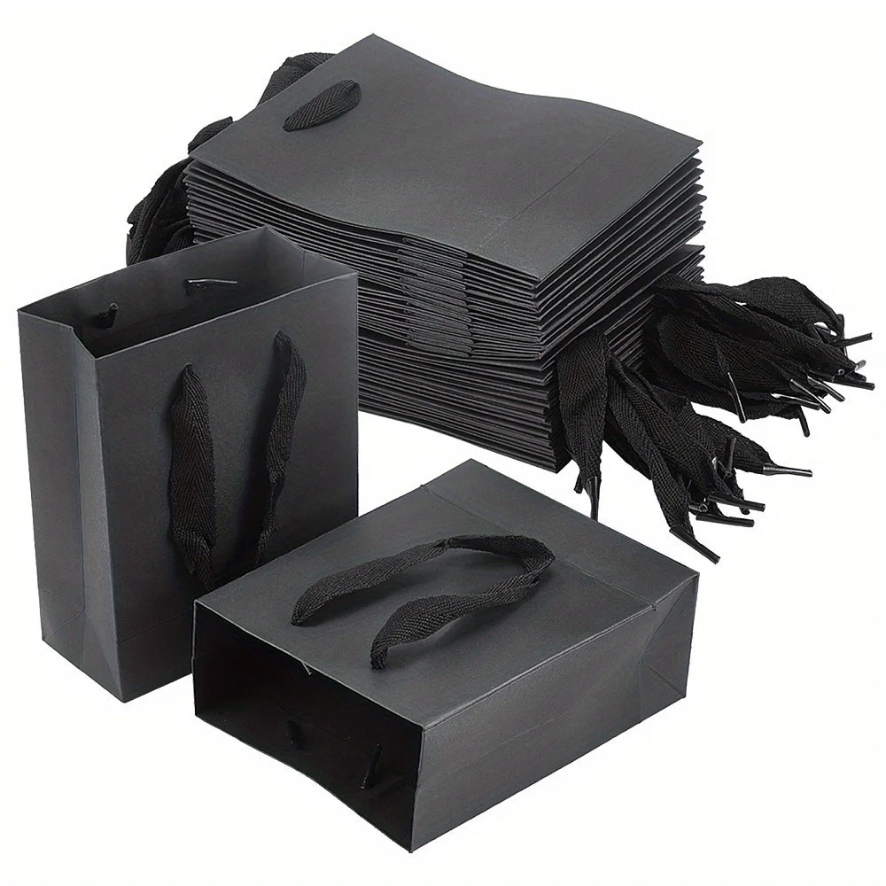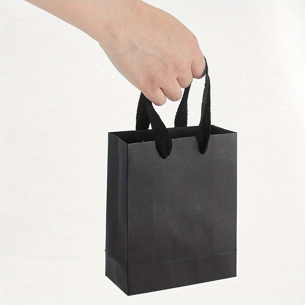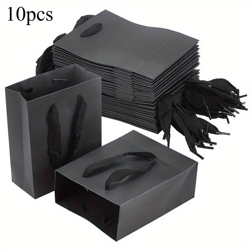 10pcs Black Kraft Paper Bag with Handles Multi Size Festival Gift Bags Gift Jewelry Wedding Birthday Party Decoration Paper Bags