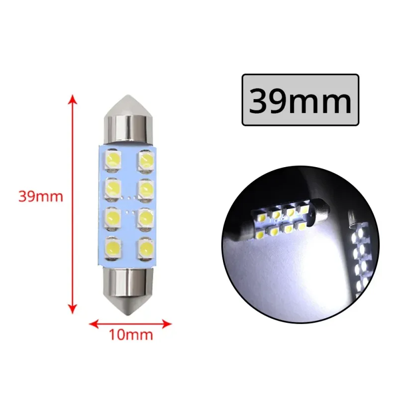 10Pcs Car T10 Led Light 3528 1210 White 8SMD Domed Interior Bulb 31mm 39mm 41mm Trunk DC 12V Reading Equipment Indicator Signal