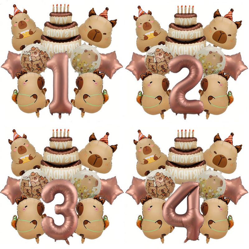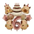 10Pcs Cartoon Animal Capybara Theme Birthday Cake Foil Balloon Children Birthday Party Coffee Number Balloon Baby Shower Decora