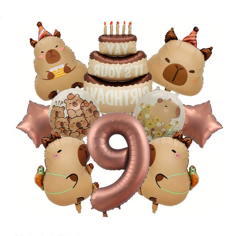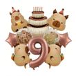 10Pcs Cartoon Animal Capybara Theme Birthday Cake Foil Balloon Children Birthday Party Coffee Number Balloon Baby Shower Decora