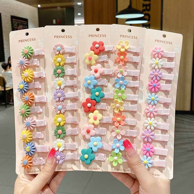 10Pcs Childrens Hair Clip Cartoon Edge Cloth Small Hair Clip Cute Little Girl Side Clip Baby Lovely Flower Hair Duckbill Clip