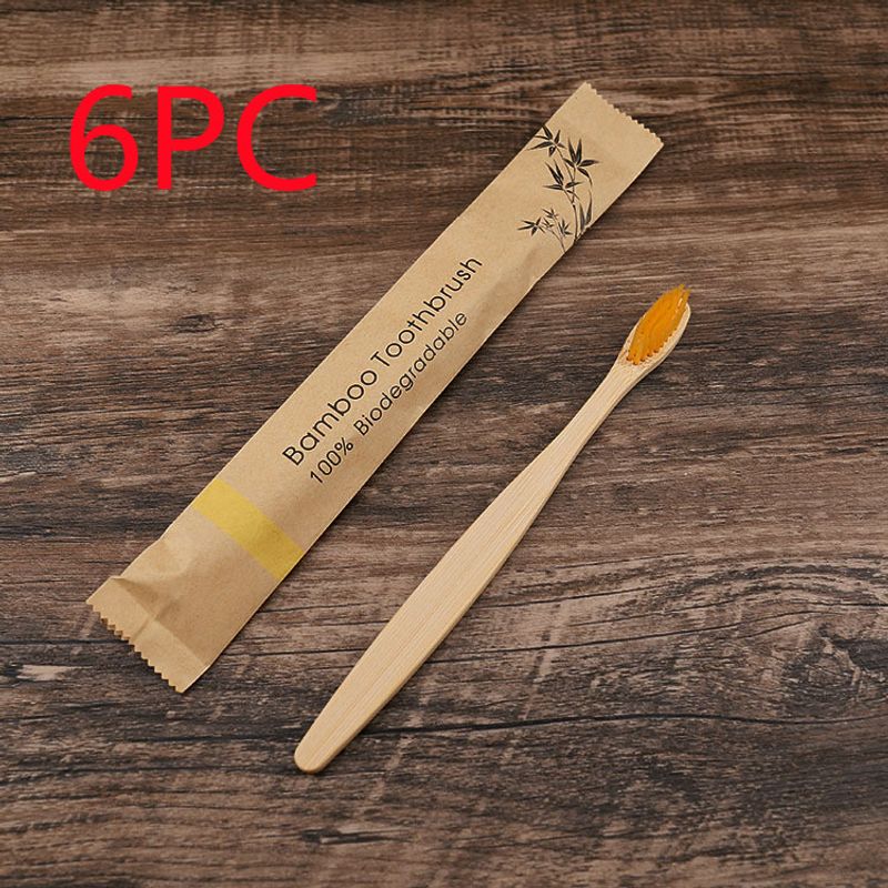 10Pcs Colorful Toothbrush Natural Bamboo Tooth Brush Set Soft Bristle Charcoal Teeth Eco Bamboo Toothbrushes Dental Oral Care Yellow 6PCS