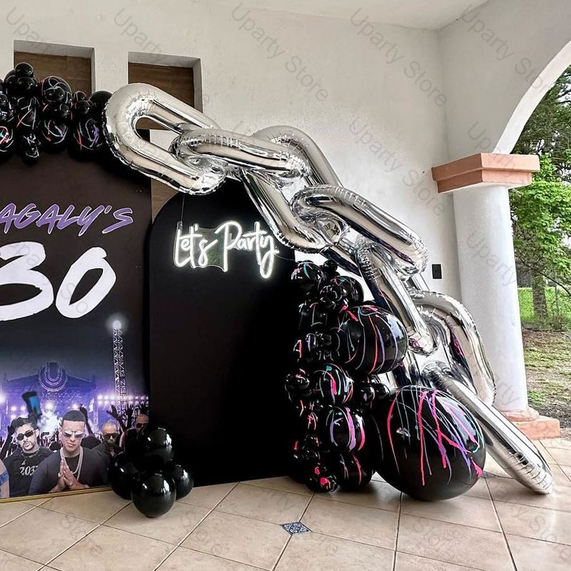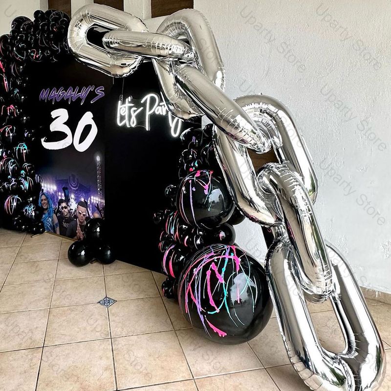10Pcs Foil Chain Balloons DIY 16/32Inch Metal Silver Gold Giant Chain Balloons for Birthday 80s 90s Party Wedding Decorations