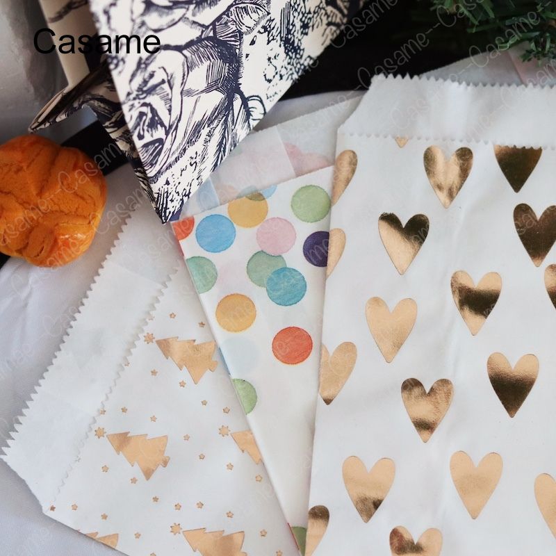 10pcs, Gift Bags (13.0*3.51*19.0cm), Colorful Dots Pattern Bags Oil-Proof Paper Goodie Bags Treat Bags Candy Biscuit Cookie