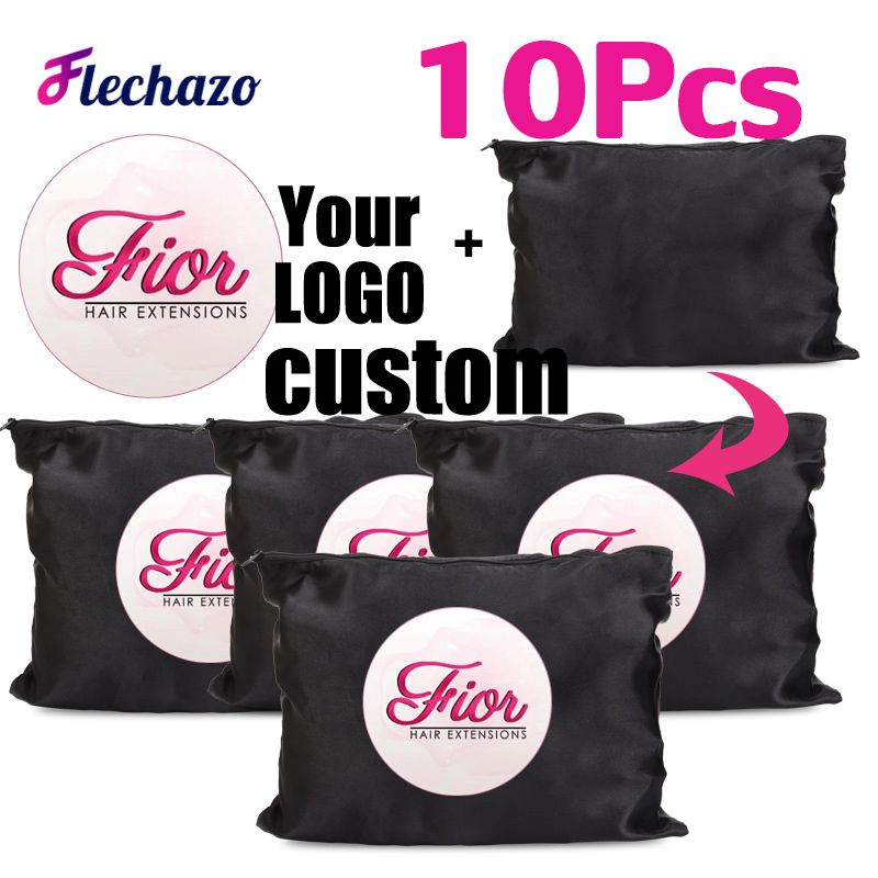 10Pcs Hair Bags With Zipper For Bundles Packaging Satin Wig Bags 25*35Cm Big Size Satin Silk Hair Packaging Bag Logo Customize