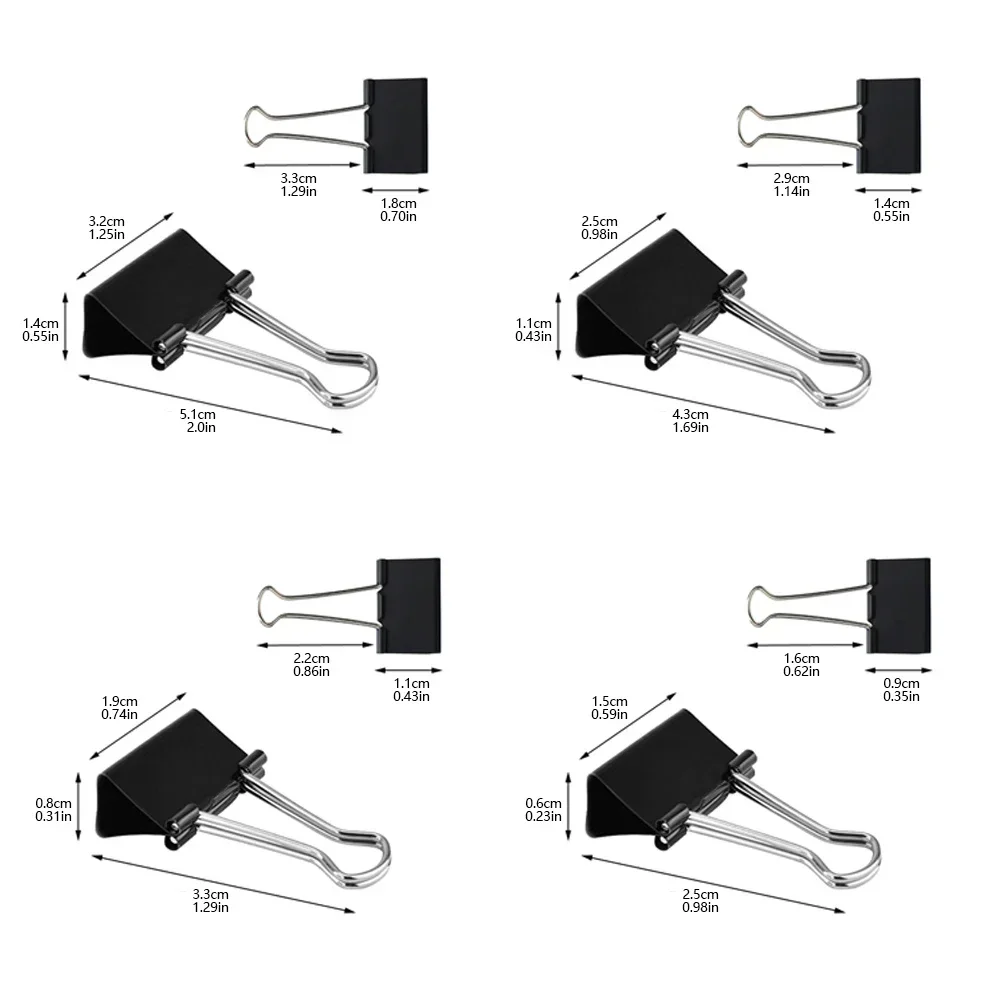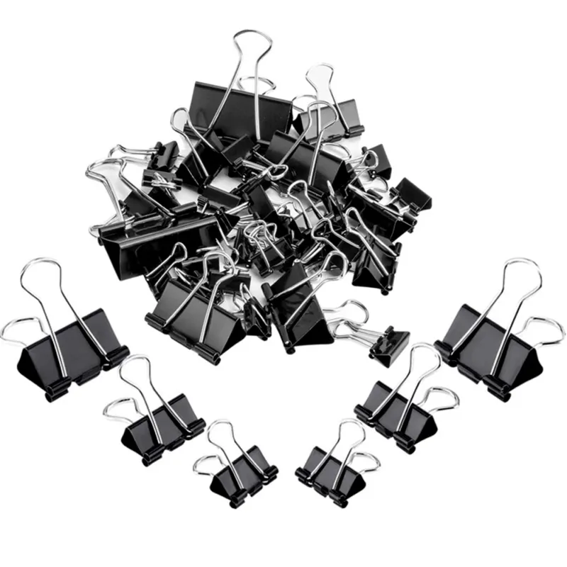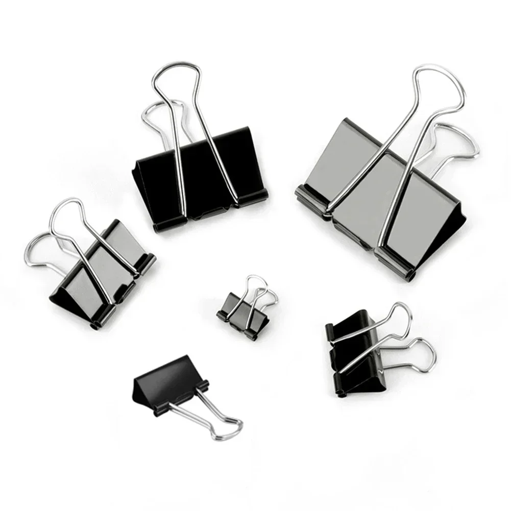 10PCS Metal Paper Clip 15mm 19mm 25mm 32mm Foldback Metal Binder Clips Black Grip Clamps Paper Document Office School Stationery