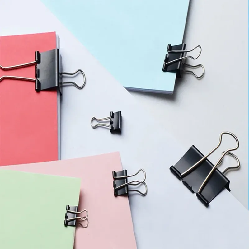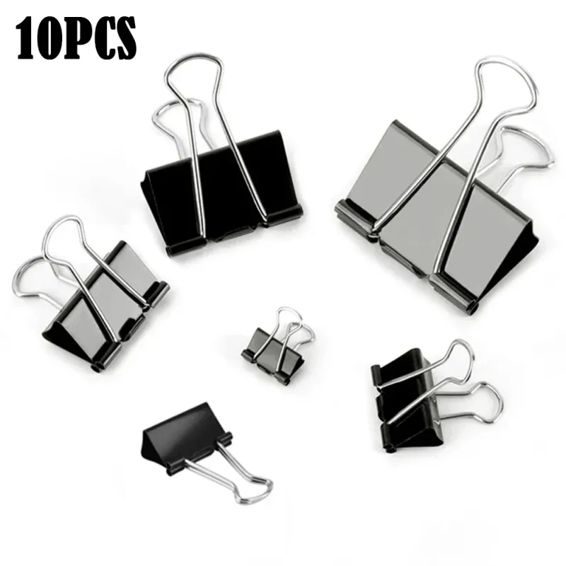 10PCS Metal Paper Clip 15mm 19mm 25mm 32mm Foldback Metal Binder Clips Black Grip Clamps Paper Document Office School Stationery