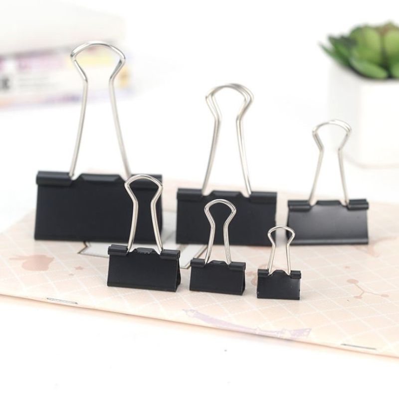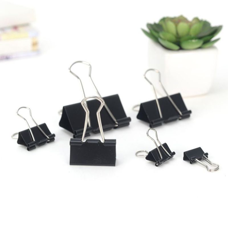 10PCS Metal Paper Clip 19 25 32 41 51mm Foldback Metal Binder Clips Black Grip Clamps Paper Document Office School Stationery