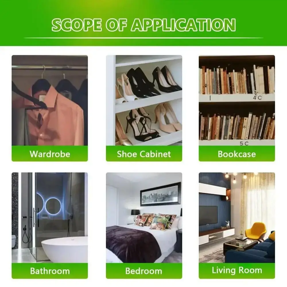 Scope of use: bedroom, bathroom, basement, cloakroom, closet, bookcase, cupboard, storage room, office, conference room, hotel, car, boats, etc.