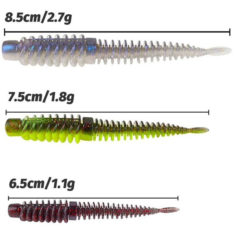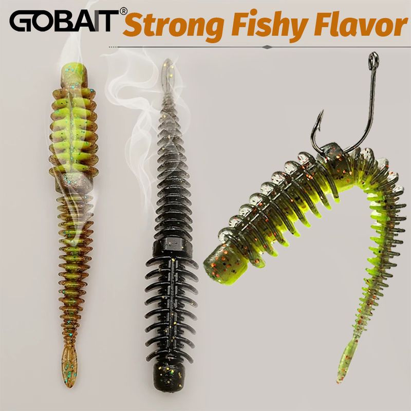 GOBAT 10PCS Lures kit worm Bait 6.5cm 7.5cm 8.5cm Soft Lure DIY color 1.1g 1.8g 2.7g jig Hook Fishing Tackle wobber Pesca Elastic grub Swimbait gear Sinking lure