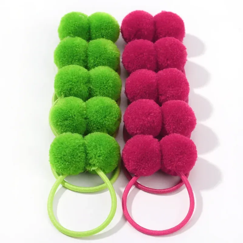 10Pcs Solid Color Baby Hair Ties Handmade Girls Winter Kids Fur Ball Rubber Band Polytail Hair Rope Hair Accessories Wholesale