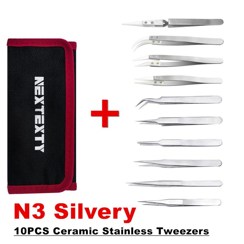 10Pcs Tweezers Set With Bag Industrial Electronic ESD Stainless Steel Anti-Static Precision Tweezer Kits Phone Repair Hand Tools