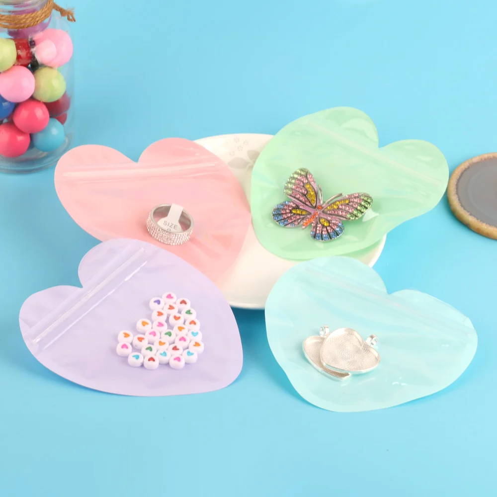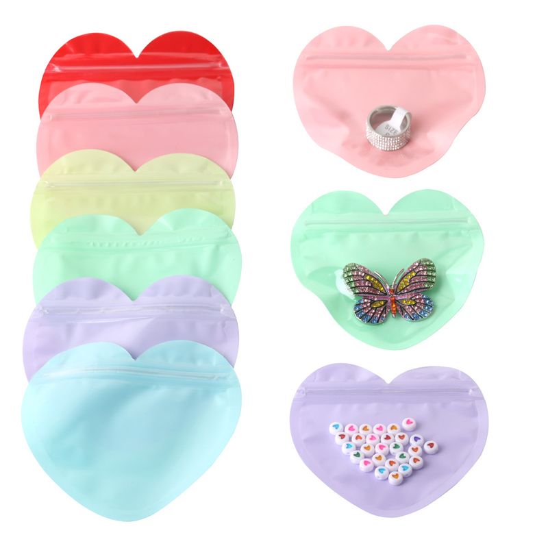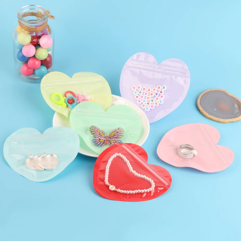 · Name:10pcs/50pcs Heart Shaped Sealing Jewelry Pouches Bag Transparent Plastic Durable Zipper Lock Convenient Packaging Bags Wholesale