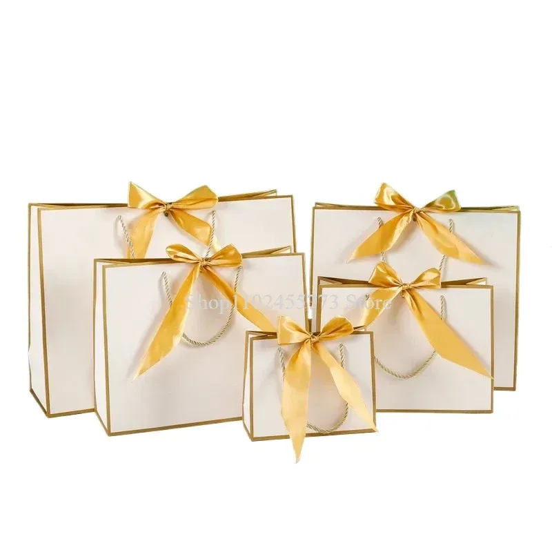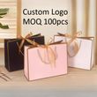 10pcs/lot High Quality Pretty Pink Gift Bag Gift Box Ornament Pajama Book Black Handle With Ribbon Paper Box Bag Kraft Packaging